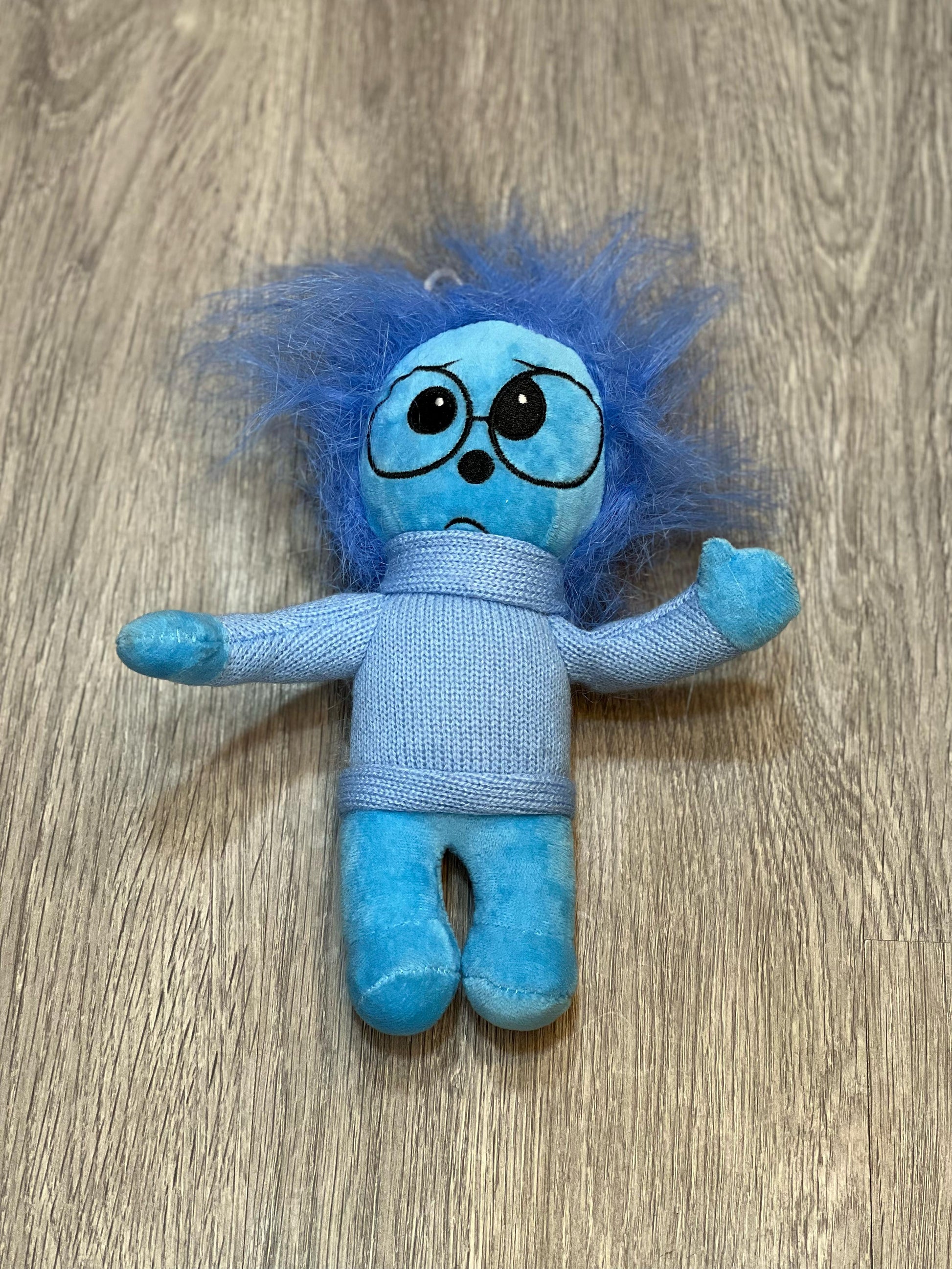- Tactile and Soft: Joy features embroidered facial details and is artfully sculpted from super cuddly, tactile fabrics including a shiny satin dress and plush blue hair.